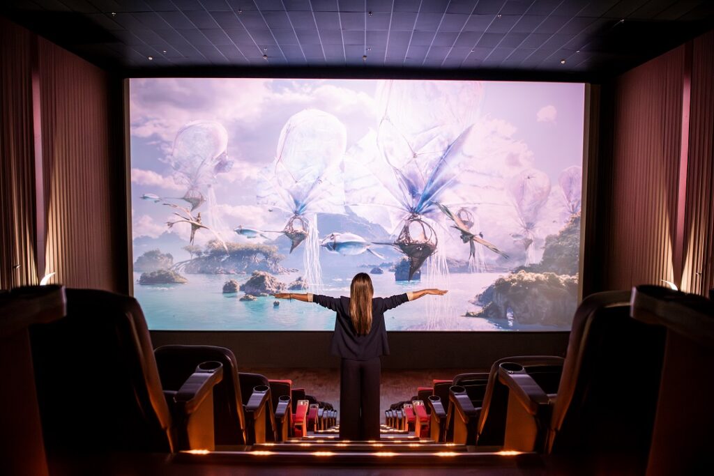 Com mais de 146 metros quadrados de área visual, a tela PLFS foi calculada para preencher a visão periférica do espectador.